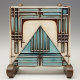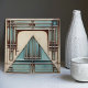Discover the allure of the "Art Deco Triangular Geometry Ceramic Print Tile," where architectural charm meets modern printing. This piece features a striking Art Deco design with triangular shapes and linear patterns creating a sense of movement and depth. With a soothing palette of teal and cream accented by deep brown lines, the tile print captures the essence of the roaring twenties. Although the tile design suggests a three-dimensional quality, this is a high-resolution print from an original embossed tile, offering a flat surface for ease of installation. Perfect for adding a touch of sophistication to any interior, it is ideal for those who appreciate the timeless elegance of Art Deco motifs.