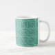 Cette tasse au design Art Déco est faite d'un angle droit avec un labyrinthe à l'intérieur en turquoise sur un champ vert mer.