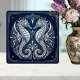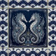 Art Deco Two Seahorses Mother of Pearl Blue Tile