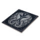 This stunning ceramic tile features a captivating Art Deco design showcasing two majestic seahorses rendered in a lustrous mother of pearl effect against a deep blue background. The intricate linework and symmetrical composition evoke a sense of timeless elegance and oceanic wonder. Each seahorse is meticulously detailed with a mosaic-like pattern, reflecting light beautifully and adding a luxurious shimmer. The surrounding ornamental details, reminiscent of vintage aesthetics, enhance the overall sophistication, making this tile a unique statement piece for any home decor. Perfect for creating a focal point in bathrooms, kitchens, or as an artistic accent wall, this tile brings the enchantment of the sea with a touch of refined glamour.