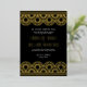 Celebrate your big day in fabulous art deco style with this black, Gatsby inspired wedding invitation featuring a fan motif in real raised gold foil. Easy to personalize text and a blank backer allow you to add any information you need to this roaring twenties style wedding invitation.