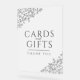 Cartes d'art de coin botanique en feuilles grises foncées et blanches, et signe mariage de cadeaux. Un design feuilleté simple idéal pour aider les invités à laisser des cadeaux pour vous sur votre table de cadeaux. D'autres couleurs et objets correspondants sont disponibles. © Dessin et dessin de la feuille d'origine par Sarah Trett pour www.mylittleedenweddings.com sur Zazzle.