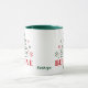"CROYEVE" dit le texte rouge stylisé sur cette tasse. Au-dessus du texte se trouve une ligne d'art moderne dessinée Arbre de vacances et étoile. Des flocons de neige décorent de chaque côté de l'arbre. L'image est imprimée deux fois sur la tasse, avec votre nom en bas entre les images.