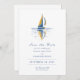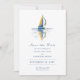 Customize this stylsih clean crisp vertical Bridal Shower Invitation, designed with an original navy blue and yellow simple artistic painting of a sailing boat with a lovely reflection of it in the sea. Fully customizable and set as a template for your easy customization. Minimalistic airy nautical design. You can also change the corner style for this invitation.