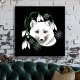 An Arctic fox gazes outward in this Art Nouveau inspired portrait. Four snowdrop flowers encircle the fox with white snowflakes. Set against a black backdrop
