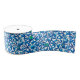 Ribbon in a William Morris Art Nouveau tapestry pattern of exotic birds in a pomegranate tree, with cobalt and cerulean blue leaves, birds and fruit in cobalt blue and turquoise, accented with lime green, on a white background
