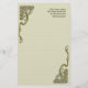 Brevpapper för mera högtidliga tillfällen. Dekorerat med med blomornament in Art Nouveau-stil (Alfons Mucha). Papperet är linjerat så at raderna skall blir raka, homme diskret för at inte ta uppmärksamheten från mönstret. Man kan på förhand fylla i avsändare (eller något annat) eller också radera det fältet (clair). Bra till hemmet eller till kontoret eller också som gåva, kanske till en kollega.