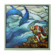 Art Nouveau Clown Fish and Dolphins Stained Glass Tile