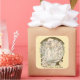 This is a digitally enhanced print of a vintage Art Nouveau style Ex Libris bookplate design template featuring an illustration of a girl reading a book bordered by flowers and stars. You can easily personalize the text and customize the background colour in this template.