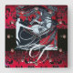 ART NOUVEAU FAUN Red Burgundy,Black Damask Square Wall Clock