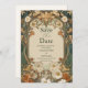 An opulent Art Nouveau composition filled with graceful curves, blooming florals, and antique golden flourishes. Inspired by turn-of-the-century elegance, this piece captures the spirit of romantic rebellion with flowing lines and rich botanical detail. Ivory blooms and deep emerald tones frame your names and wedding date like a page from an illuminated fairytale. Ideal for vintage-loving couples with a taste for the dramatic and the poetic.