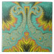 Art Nouveau Fractal Turquoise Feathers Fountain Tile