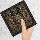 This exquisite ceramic tile features a stunning Art Nouveau-inspired design, intricately detailed with golden botanical illustrations against a deep navy background. The motif showcases a central floral mandala surrounded by elegant branches of berries and leaves, with celestial elements like a radiant sun and stars adding a touch of mystique. The precise lines and symmetrical composition evoke a sense of timeless elegance, making it a perfect addition to any space seeking a sophisticated and artistic touch. Whether used as a standalone decorative piece or as part of a larger installation, this tile brings a unique blend of nature-inspired beauty and classic artistry into your home.
