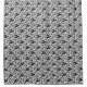 Digital reproduction of an Art Nouveau damask pattern shower curtain with a striated, Ikat woven texture - Black pattern on a white background
