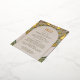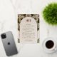 This wedding information card is a splendid nod to the Art Nouveau era, showcasing the intricate and fluid designs reminiscent of the work by the renowned artist Alphonse Mucha. The card features a captivating border in a palette of olive green, antique gold, and ivory, highlighted with gold foil accents that bring a luxurious shimmer to the design. The elegant archway at the centre provides a serene space for important details, surrounded by detailed floral and geometric patterns that are the signature of the Art Nouveau style. This card is not only a practical piece of your wedding stationery but also a beautiful keepsake that guests will admire. Its sophisticated blend of historical art with modern requirements makes it a perfect choice for a couple celebrating their union with a touch of timeless artistry.