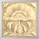 Design features an art nouveau jugendstil flower tile with crackling/ crazing look. Flower is very ornate with curly scroll foliage. Done in colors of gold and cream.