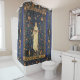 Gorgeous Collage of Art Nouveau vintage fine art textile by William Morris of a Lady surrounded by Flower, Birds and Rabbits, with a scroll on the bottom and top of Poetry, is on this Shower Curtain. Image is public domain due to expired copyright. Collage made from trim is by me.