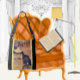 Featuring the art of a eugene grasset poster entitled Librairie Romantique. Art nouveau , gothic romanticism. A very unique image of a woman, in 1830's attire. She is reading while sitting on a pile of books, skull at her feet. In colors of black , peach, gold and white.