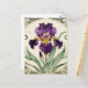 Embrace timeless elegance with this exquisite Art Nouveau-inspired iris that blooms with graceful sophistication and vintage allure. A majestic deep purple bearded iris takes center stage, its velvety petals accented by golden veins and surrounded by flowing emerald leaves, all framed by intricate swirling vines, ornate gold lines, and delicate floral motifs on a soft cream background. The harmonious curves and rich jewel tones evoke the romantic beauty.