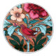 Vintage Arts and Crafts era pattern detail of floral fabric. Art Nouveau style has vivid colours. Floral motif in red, aqua and green with coffee background.