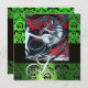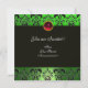 ART NOUVEAU RED BLACK GREEN WHITE DAMASK MONOGRAM INVITATION