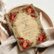 Celebrate romance with this dramatic Art Nouveau wedding design, featuring lush red roses and peonies arranged in an ornate vintage border. The rich tones and antique background create a timeless and elegant atmosphere, perfect for fall or winter weddings, vintage-inspired celebrations, or couples who love bold floral artwork. Easily personalize with your details to create a unique keepsake.
