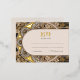 This RSVP postcard is a splendid companion to the Art Nouveau wedding invitation suite, adorned with golden flourishes and floral motifs reminiscent of the elegant turn-of-the-century design. The front side of the postcard is a canvas of creamy beige, bordered by a rich mocha frame and detailed with a fan of golden and chocolate brown accents. At its heart, it features a clear RSVP request in radiant gold script, complemented by a subtle choice for guests to indicate their attendance. Perfect for the refined couple looking to add a dash of Gilded Age glamour to their wedding correspondence.