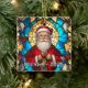 An absolutely stunning Christmas ornament perfect for a cherished spot on your tree! This design captures a warm, detailed portrait of Santa Claus holding a star and holly, beautifully rendered in the vibrant, illuminated style of traditional stained glass. The rich colors and classic imagery make this a timeless piece, ideal for commemorating a special year, gifting, or adding an elegant, classic holiday touch to any Christmas decor collection.