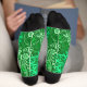 Socks in an Art Nouveau, fantasy underwater floral pattern of graceful seaweed, leaves and flowers, based on a vintage William Morris textile design, digitally enhanced and coloured in shades of light to deep emerald green, with a dark green background