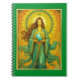Notebook in an Art Nouveau interpretation of the World tarot card depicting a woman in flowing blue robes holding a globe, surrounded by radiant patterns. She represents the wisdom which upholds life on this and all worlds, and invites us into cosmic citizenship