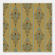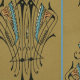 An artistic, art nouveau design by Christopher dresser. A mixture of arts and craft style , Victorian and art nouveau textile. Bold and elegant. In colours of black, gold, blue and orange.