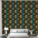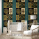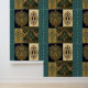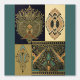 A collage of artistic, art nouveau prints by Christopher dresser. A mixture of arts and craft style , Victorian and art nouveau textile prints. Bold and elegant. In colours of black, gold and green / teal.