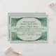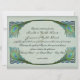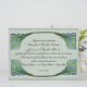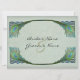 This design features an aged looking background in a parchment colour with green overtones with some Art Nouveau peacock feathers as a decorative border. This works for just about any season, formal or informal.