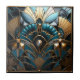 Beautiful art deco tile with a geometric, pattern in black, gold and turquoise.