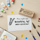 Supportive art teacher wooden art stamp. Decorated with a pair of painting brushes. Personalized with the teacher's name and two additional lines of text. Fun stationary for a teacher who wants to encourage and praise their student's work and inspire them to keep creating.