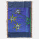 Peinture texturée aux fleurs blanches et jaunes, arrière - plan bleu, art original.
