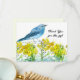 Merci pour le cadeau orné d'un oiseau bleu sur des fleurs sauvages d'arbuste de lapin jaune esquissées à l'encre et peintes à l'aquarelle. Au verso se trouve une teinte douce de vert avec un espace pour écrire un message. Trouvez des autocollants et une carte d'anniversaire assortis dans ma boutique.