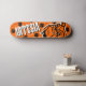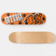 Planche à roulettes Artesia Bulldogs orange, noir et blanc avec mascotte de bulldog, chaînes, empreintes de pattes et lettrage ARTESIA. (Chaque fois que ce Bulldog est vu sans mon copyright Skyrider Designs, il est volé l'oeuvre)