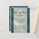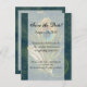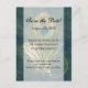 Celebrate your wedding in an artful and unique peacock theme with this beautiful save the date wedding postcard and matching accessory set. Features stylish, rich and luxurious artwork of a peacock feather detail in colours of cobalt blue, teal and celadon light green. Background in dark aqua blue with an antique wash and swirly design. © 2010 www.CustomInvitesOnline.com