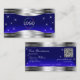 Artful Night Sky Blue Silver Borders Logo QR Code Business Card