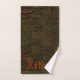 Le logo de Arthur, sur un motif de lions en spirale abstrait, est présenté sur ce somptueux ensemble de serviettes