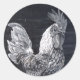 Artie était un coq de bantam gris que j'ai eu pendant plusieurs années, un poulet doux qui s'est assis sur mon épaule pendant que j'étais dehors. Il s'est également avéré être un bon modèle. Ces autocollants sont conçus à partir d'une peinture acrylique monochromatique que j'ai faite de lui en utilisant seulement de la peinture noire et blanche.