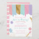 Mettons l'art en fête ! Utilisez cette amusante invitation colorée pour votre célébration de peinture. Tout le texte est modifiable. Il présente de jolies couleurs, de l'or, des éclaboussures, des traits de brosse et une brosse à peinture d'artiste. Si vous fêtez un événement avec une soirée peinture ou artisanat, c'est l'invitation parfait !