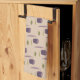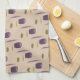 Fancy hand towel with a watercolor pattern in olive green and dark purple. Stylish kitchen gift for your new home.