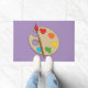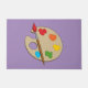 An illustration of an artist palette with colourful paint and a paint brush. This cute drawing design is a gift idea for painter, artist, and watercolor lover.