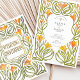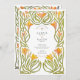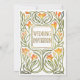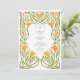 Step back in time with this exquisitely artistic wedding invitation, deeply inspired by the elegance of the Art Nouveau movement. This design features a captivating frame of stylized lilies in a warm palette of orange, yellow, and soft peach. Intricate, flowing green vines interlace to create a stunning, organic border that perfectly captures the vintage spirit. This invitation is an ideal choice for a sophisticated couple with a love for art and history, perfect for an elegant autumn wedding or a unique garden celebration. The central panel provides a classic backdrop for your fully customizable wedding details, promising an unforgettable first impression.