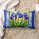 Elevate your living space with this blue iris floral stained glass lumbar pillow, combining comfort and artistic elegance for any room. Its vibrant floral design adds a sophisticated touch to sofas, chairs, or beds while providing perfect back support. Ideal for creating a cozy and stylish atmosphere in your home. GenerativeContent