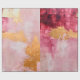 Wrapping paper with gold and pink artistic brush strokes make up this modern looking abstract background design.