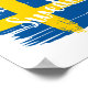 Poster print features artistic brushstroke version of the flag of Sweden with customizable text overlay on white background.