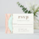 A unique artistic wedding RSVP card featuring an abstract painted watercolor design in striated shades of adobe, peach, beige and mint green. Shimmering golden lines divide the layered colours to add beautiful detailing. The design is both simple and elegant with a minimalist look. Personalize the text template with your required response date.